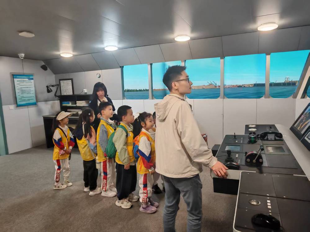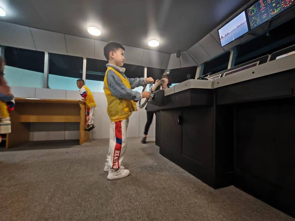 第一站是航海模拟器体验。在专业老师的引导下,小朋友们分组进入模拟驾驶舱,仿佛置身于真实的船舱之中。通过模拟操作,他们学习了基本的航海指令和驾驶流程,在沉浸式体验中感受到成为一名“小船长”的乐趣。孩子们专注地操控着方向盘,兴奋地观察屏幕上的海况变化,脸上洋溢着探索新知的喜悦与成就感。