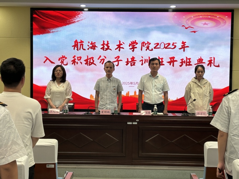 2025年5月26日晚,航海技术学院2025年入党积极分子培训班开班典礼在至德楼G106举行。航海技术学院党总支书记黄锦鹏、副书记谢保峰、组织员王超逸以及辅导员老师和95名入党积极分子出席了本次开班典礼。开班典礼由学生工作党支部书记郭若昕老师主持。